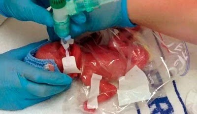 Bebê prematuro é colocado com saco de sanduíche para aquecer
